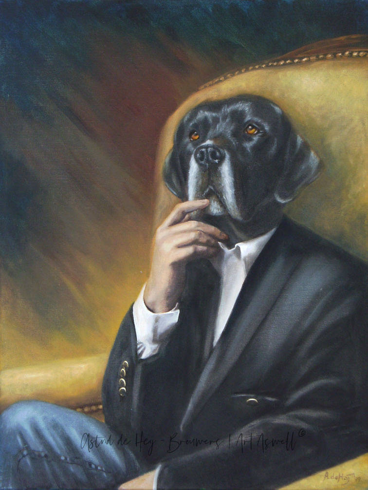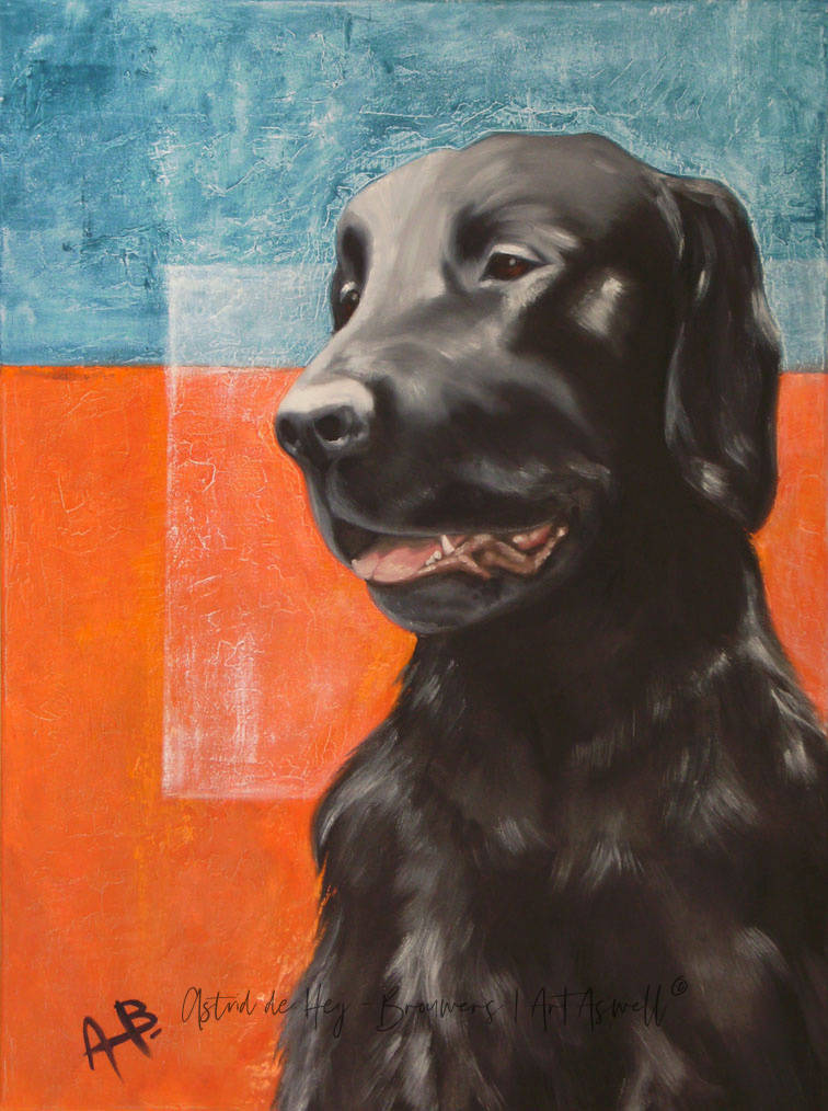 Het zwart/wit schilderij is ook van hem toen hij ongeveer één jaar was. Joe leeft al een aantal jaar niet meer, maar ik kan nog steeds uren in die wijze ogen kijken.